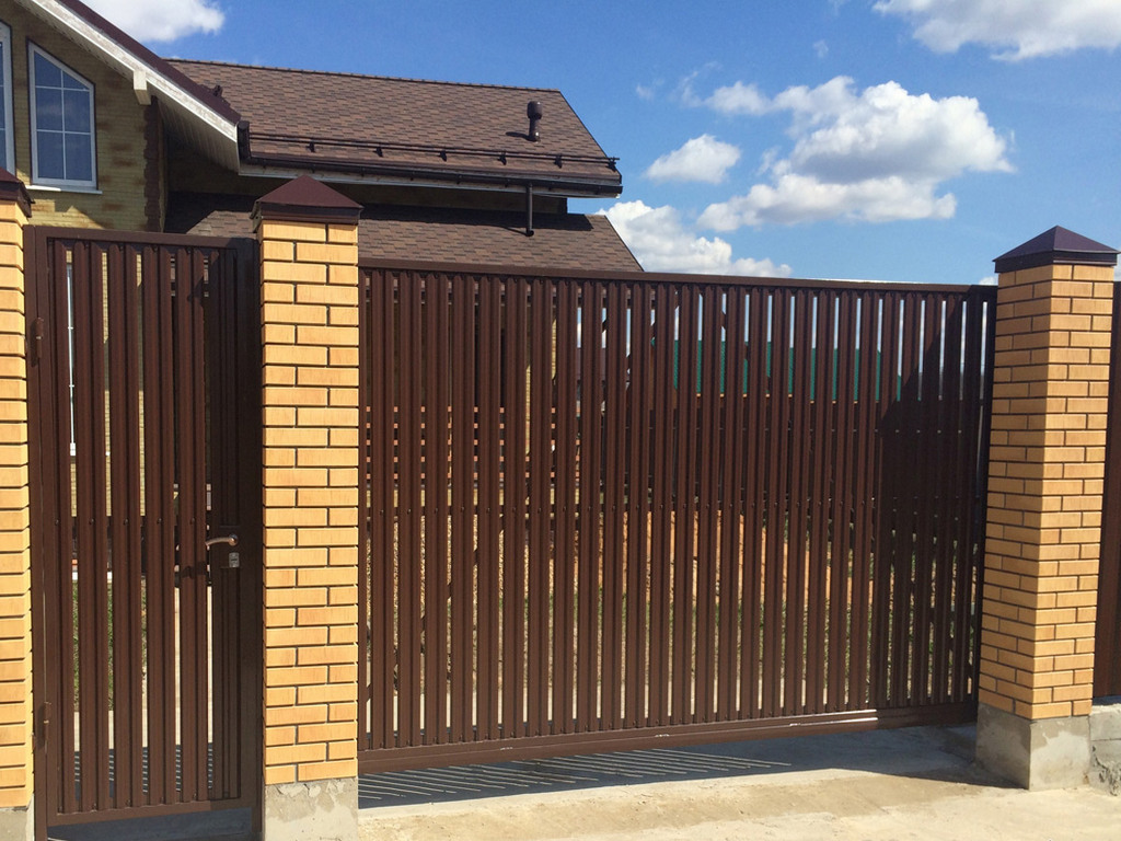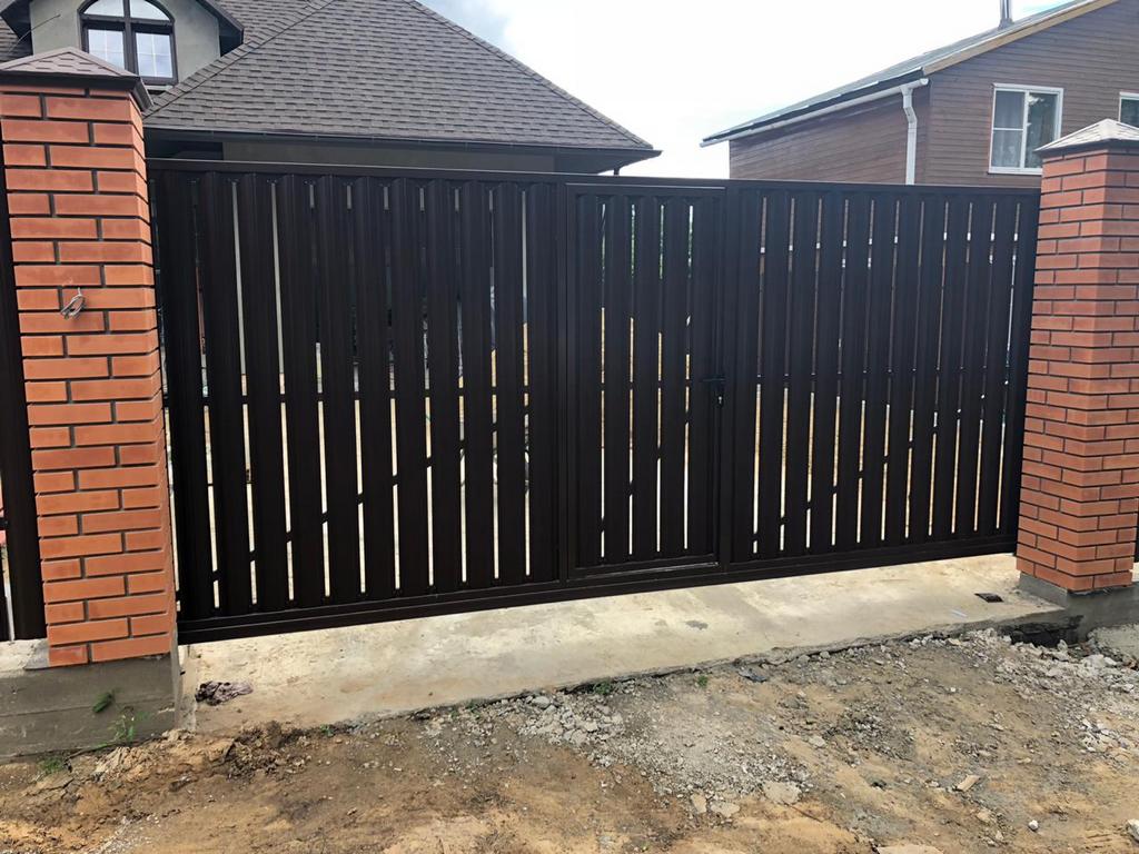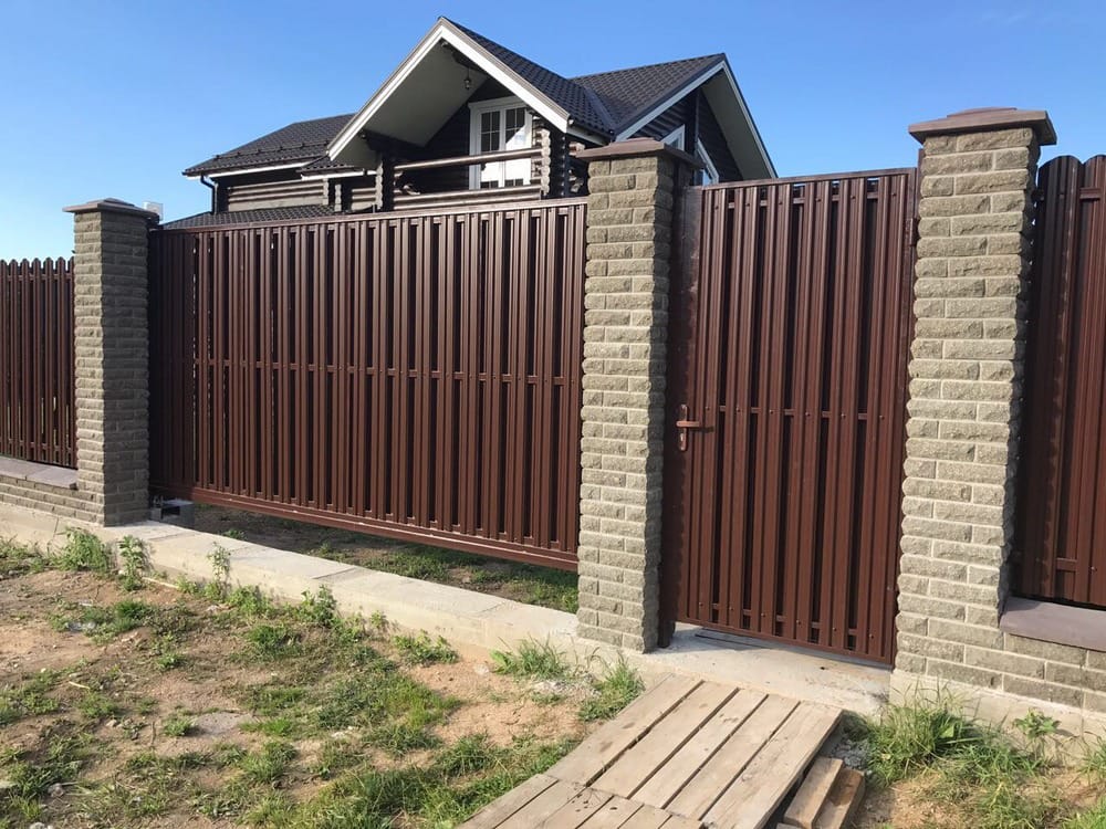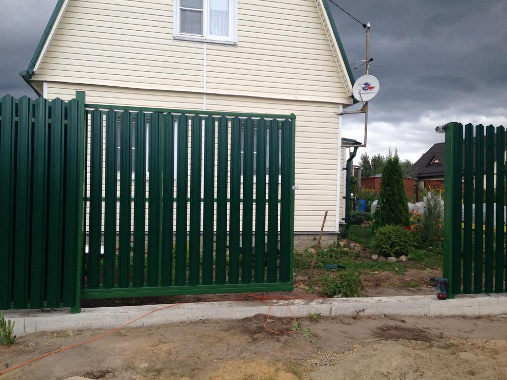 Заборы из евроштакетника с откатными воротами пример 5